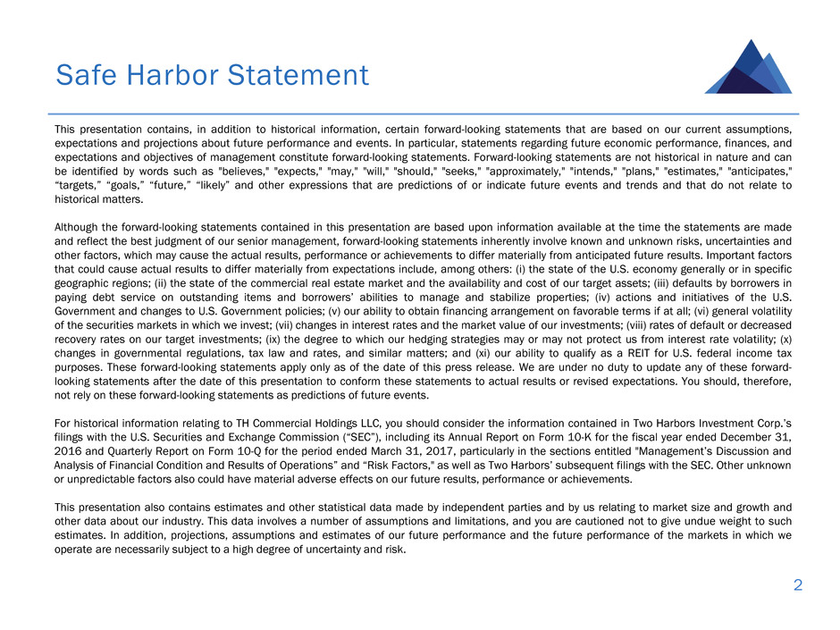 For historical information relating to TH Commercial Holdings LLC, you should consider the information contained in Two Harbors Investment Corp.’s
