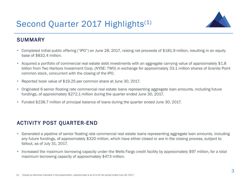 (1) Except as otherwise indicated in this presentation, reported data is as of or for the period ended June 30, 2017.