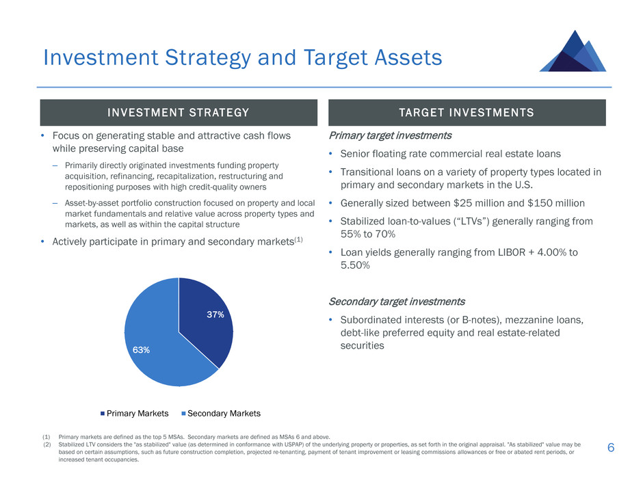 • Originated 6 senior floating rate commercial real estate loans representing aggregate loan amounts, including future