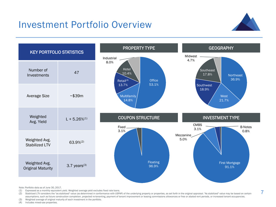 • Funded $238.7 million of principal balance of loans during the quarter ended June 30, 2017.