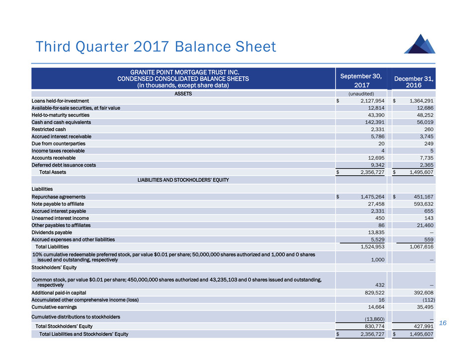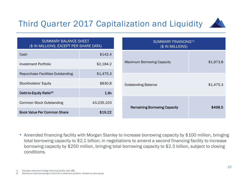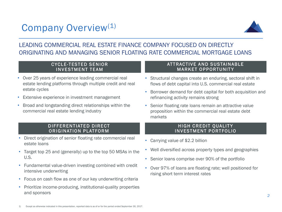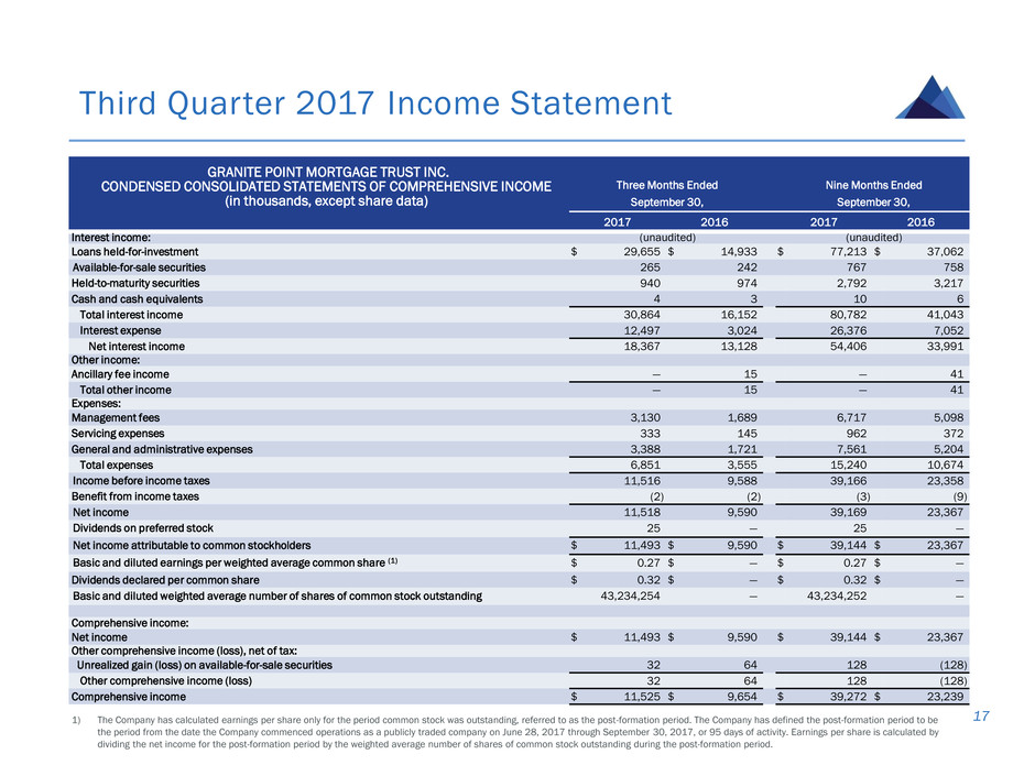 1) Except as otherwise indicated in this presentation, reported data is as of or for the period ended September 30, 2017.