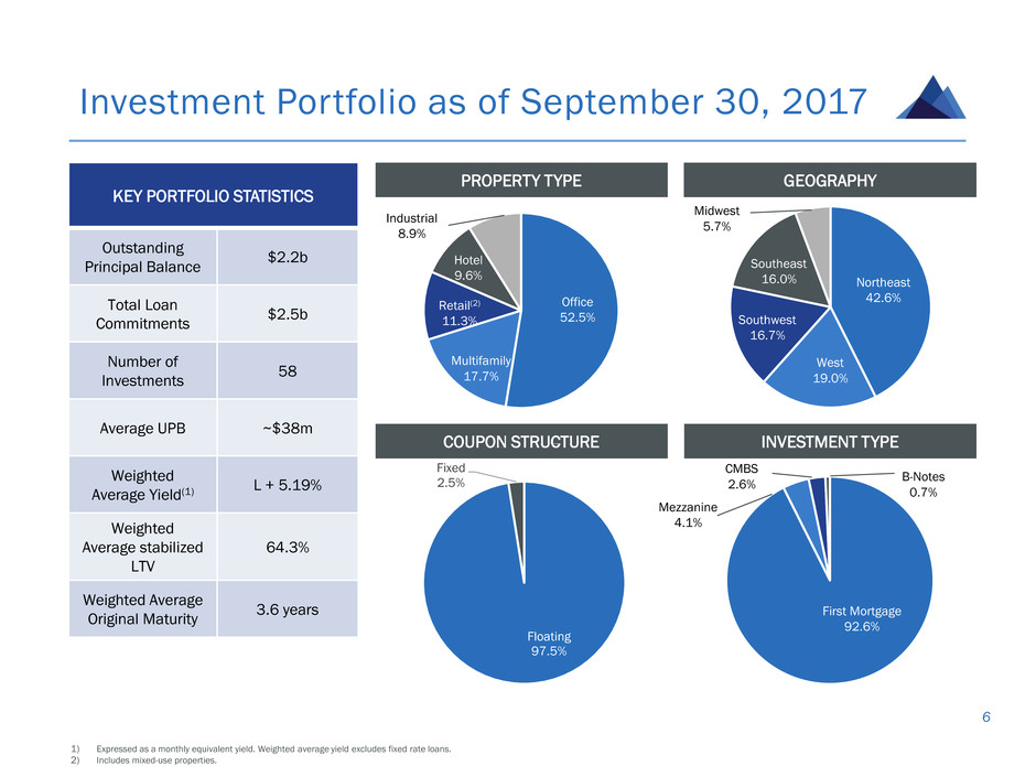 • Owned a portfolio with a principal balance of $2.2 billion, which was 97% floating rate in predominantly senior