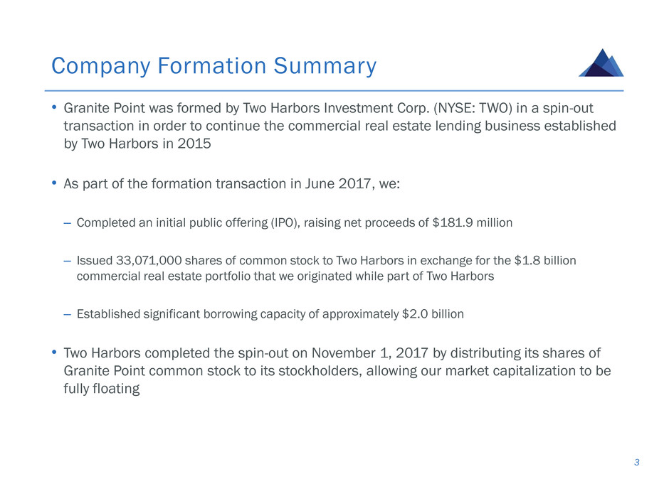 • Granite Point was formed by Two Harbors Investment Corp. (NYSE: TWO) in a spin-out