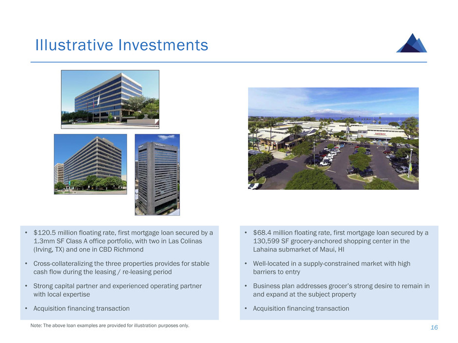 • Direct origination of senior floating rate commercial real