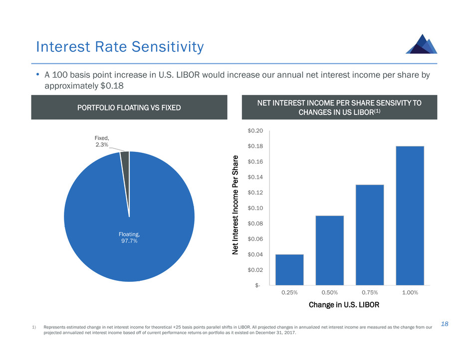 • Over 97% of loans are floating rate; well positioned for