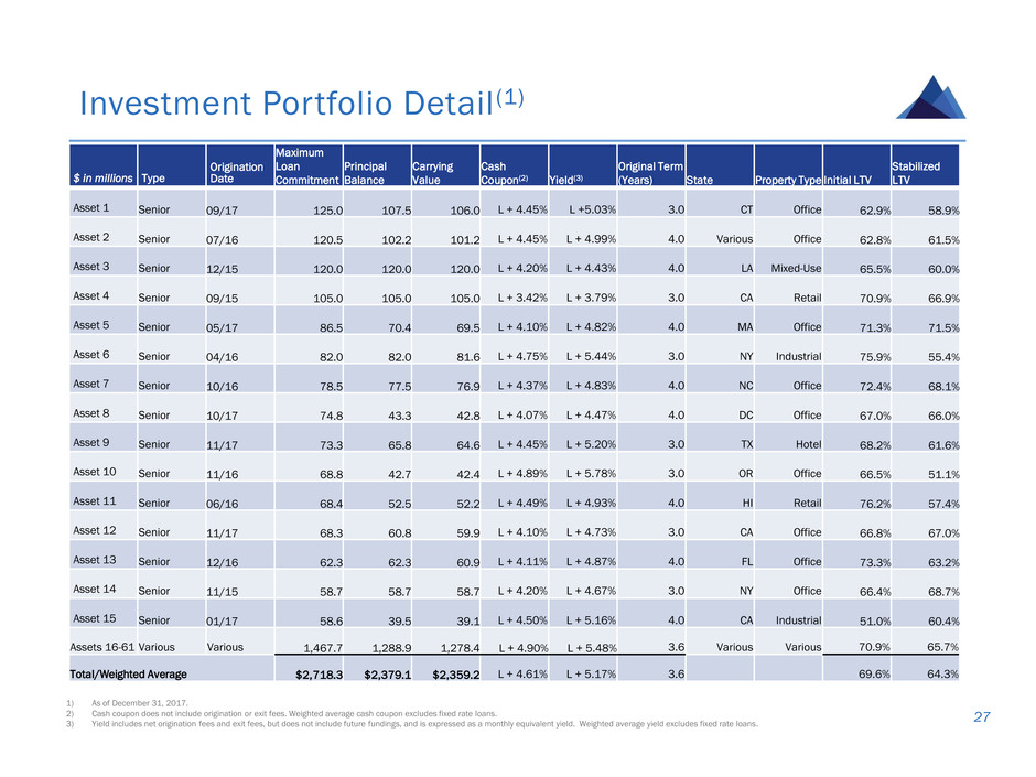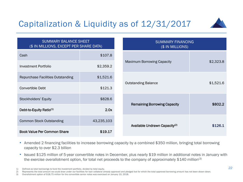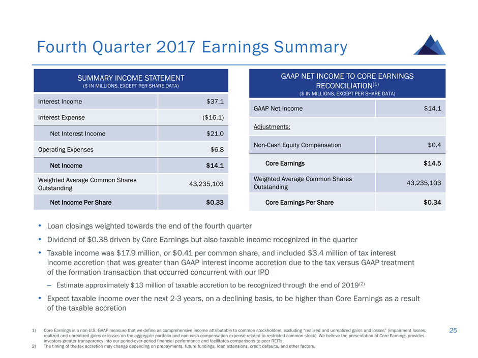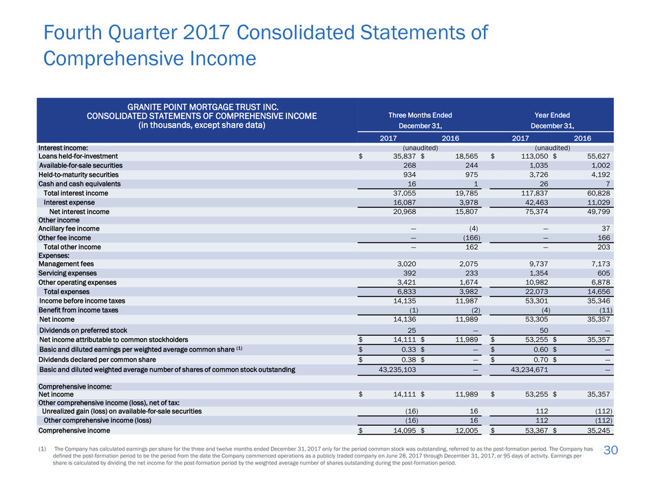 1) Except as otherwise indicated in this presentation, reported data is as of or for the period ended December 31, 2017.