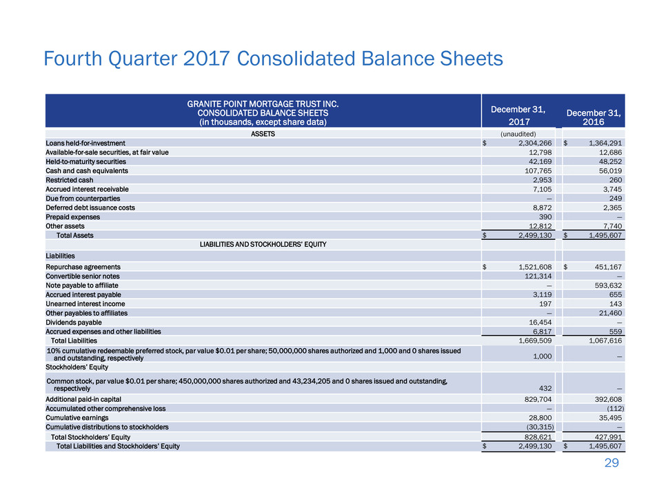Fourth Quarter 2017 Consolidated Balance Sheets