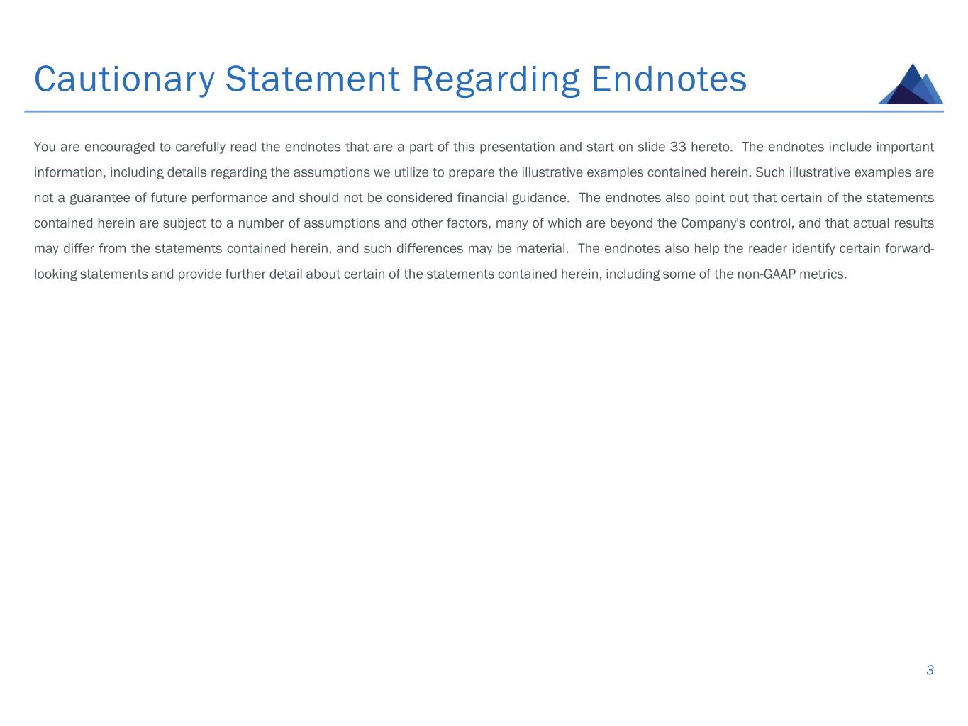 3 Cautionary Statement Regarding Endnotes You are encouraged to carefully read the endnotes that are a part of this presentation and start on slide 33 hereto. The endnotes include important information, including details regarding the assumptions we utilize to prepare the illustrative examples contained herein. Such illustrative examples are not a guarantee of future performance and should not be considered financial guidance. The endnotes also point out that certain of the statements contained herein are subject to a number of assumptions and other factors, many of which are beyond the Company's control, and that actual results may differ from the statements contained herein, and such differences may be material. The endnotes also help the reader identify certain forward- looking statements and provide further detail about certain of the statements contained herein, including some of the non-GAAP metrics.