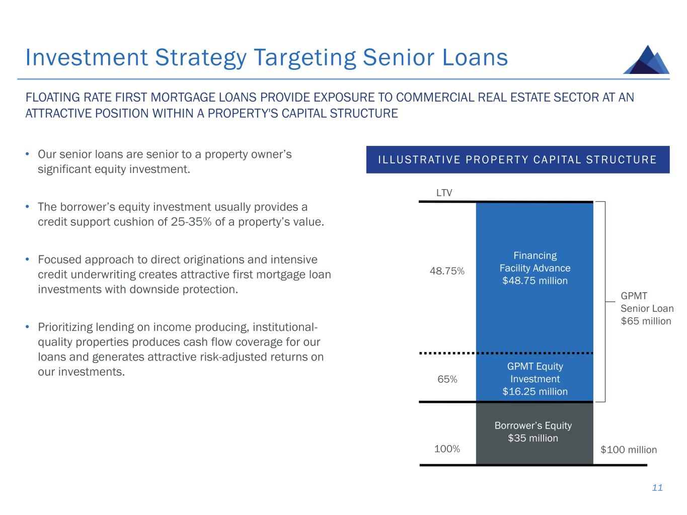 Seasoned and Cohesive Team with Top-Tier Multidisciplinary Expertise 9 DECADES OF BROAD EXPERIENCE SUCCESSFULLY NAVIGATING MANY ECONOMIC AND MARKET CYCLES ✓ Decades of balance sheet lending experience managing unlevered and levered portfolios of CRE debt investments and serving as a fiduciary for third party investor capital ✓ Successfully and profitably navigated multiple economic, real estate and capital markets cycles, benefiting from credit discipline as well as extensive asset management and workout experience ✓ Developed a CRE debt platform within a public mortgage REIT; executed an IPO/Spin-off of GPMT and successfully raised additional growth capital ✓ Established GPMT as a leading balance sheet CRE lender with long-standing borrower, property owner and broker relationships driving significant volume of directly originated attractive investment opportunities ✓ GPMT has a well-balanced funding profile, is a large and repeat CRE CLO issuer, and has access to multiple financing sources ✓ Internally-managed structure with a fully staffed, cross functional team with multidisciplinary experience provides many benefits and positions the company well for accretive growth and realization of economies of scale Real Estate Finance Credit Risk Underwriting Direct Loan Origination Asset Finance & Capital Markets Ratings Agency Asset Mgmt., Loan Workouts & REO Private Credit & Equity CMBS Conduit & Loan Securitization Legal & Corporate Governance Human Resources Strategy & Corporate Finance Audit, Tax & Corporate Treasury MULTIDISCIPLINARY EXPERTISE