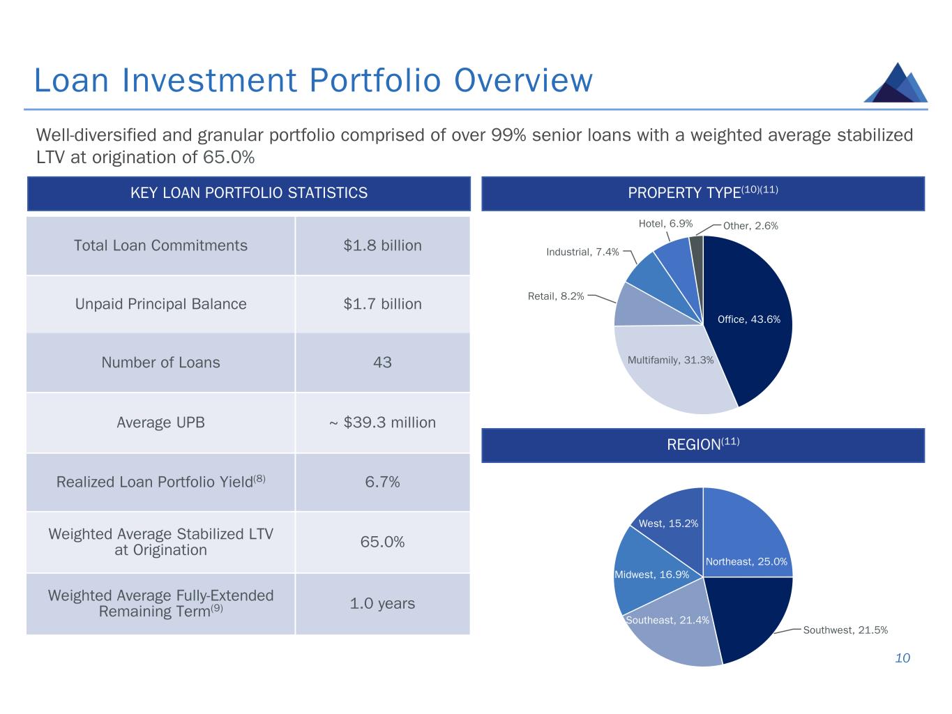 $— 9/30/2025 12/31/2025 Q4 2025 Loan Investment Portfolio Activity ▪ Net loan portfolio activity of $(30.2) million in unpaid principal balance, attributed to full and partial repayments and principal amortization of $(45.0) million, partially offset by increases of $14.7 million from fundings(6) 9 UNPAID PR INCIPAL BALANCE ROLLFORWARD (7 ) ($ in mi l l i ons ) Unpaid Principal Balance $1,720.2 44 loans Repayments $(45.0) Fundings $14.7 Unpaid Principal Balance $1,690.0 43 loans Unfunded Commitments $75.6 Unfunded Commitments $77.4 Resolutions